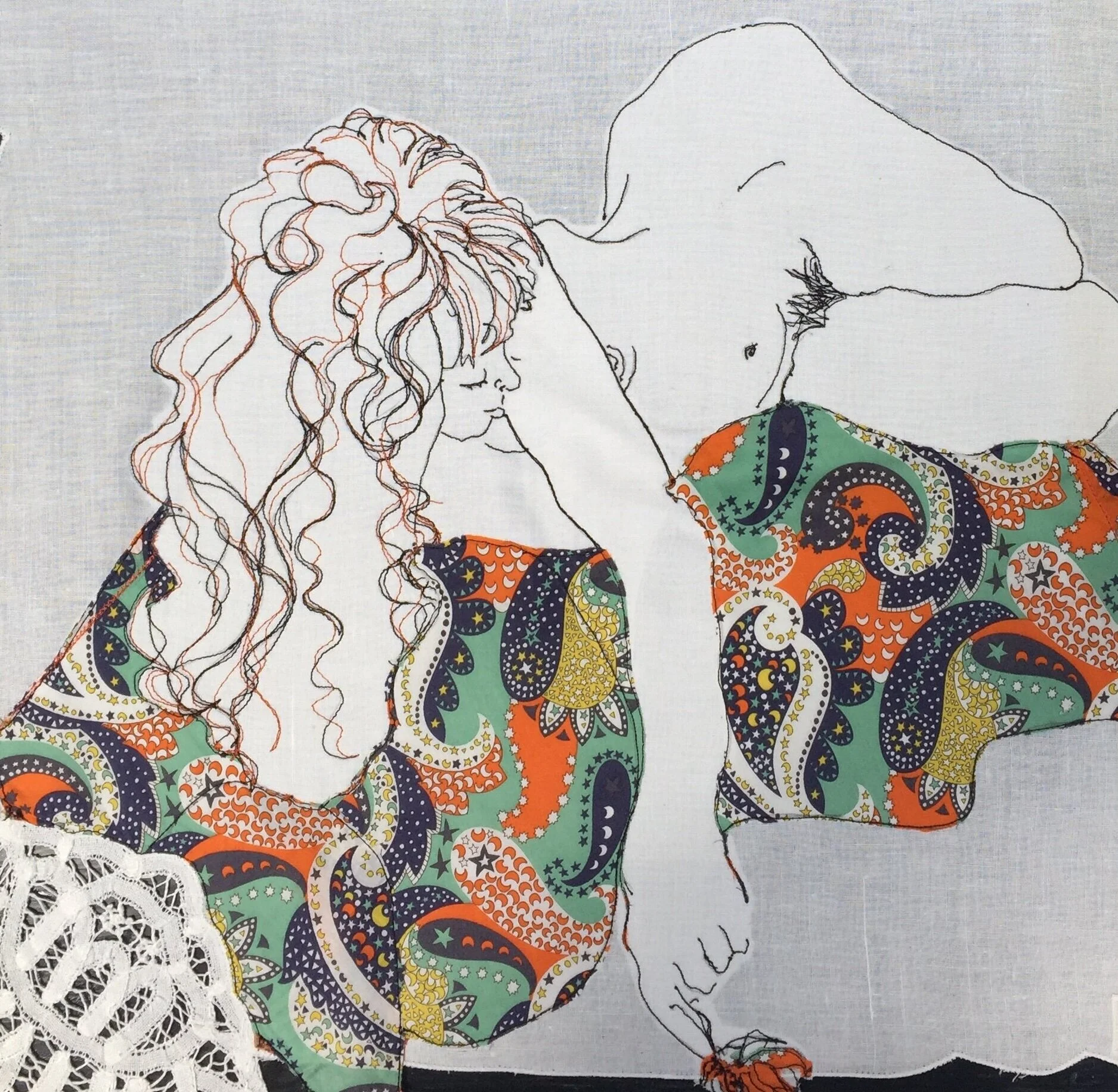 Reclining Nude, thread & calico (new work in progress)