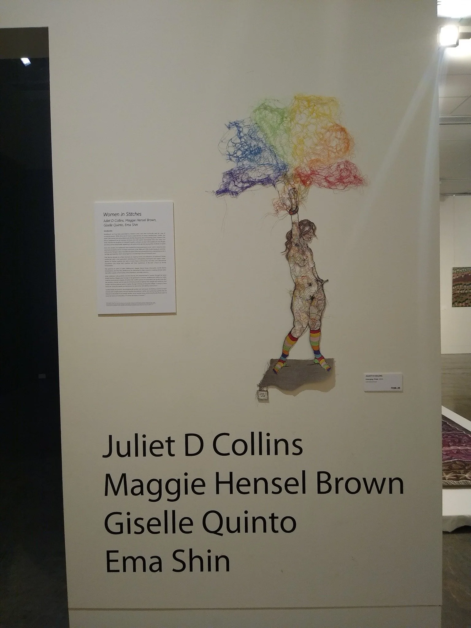 There is an ongoing revival and reclamation of traditional ‘female’ needlecraft with a new generation reworking and reinterpreting techniques and subject matter. Women in Stitches explores the work of some these national and international contemporary practitioners who infuse their creations with their experiences of life with a focus on female embodiment. The exhibition features works by Juliet D Collins, Maggie Hensel Brown, Giselle Quinto, and Ema Shin.